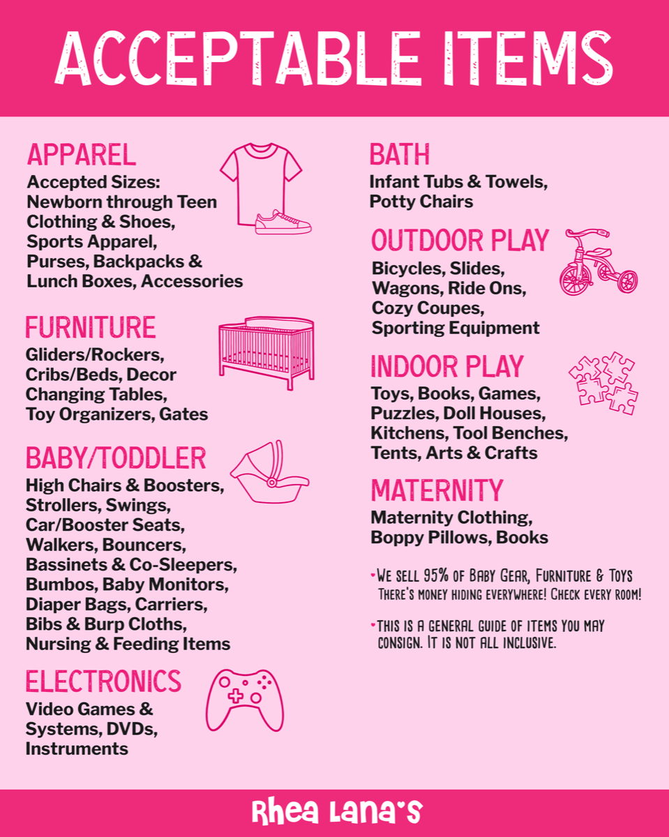 - Cribs (must meet current safety guidelines)